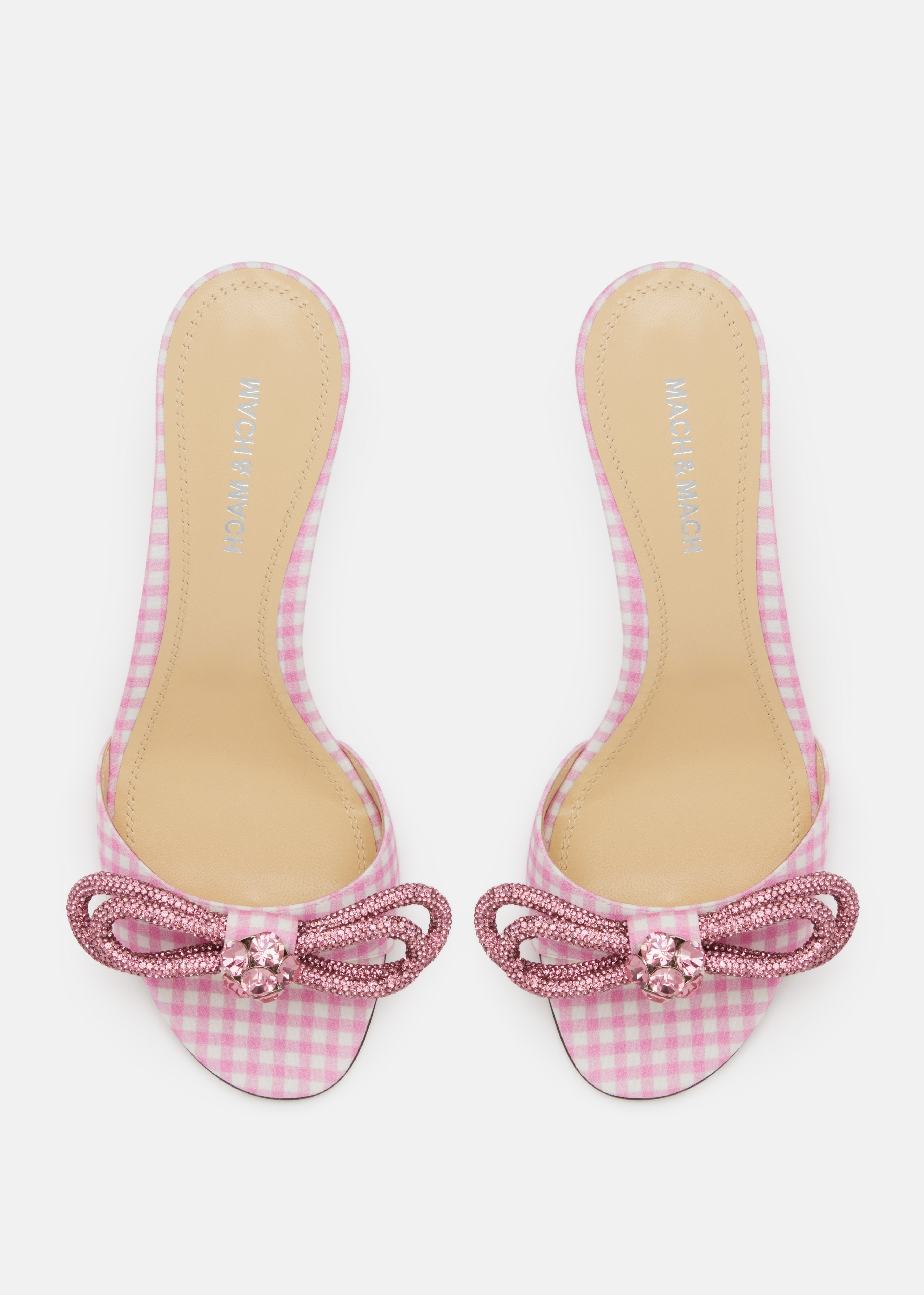 Double Bow Pink Gingham Kitten Heel Mules