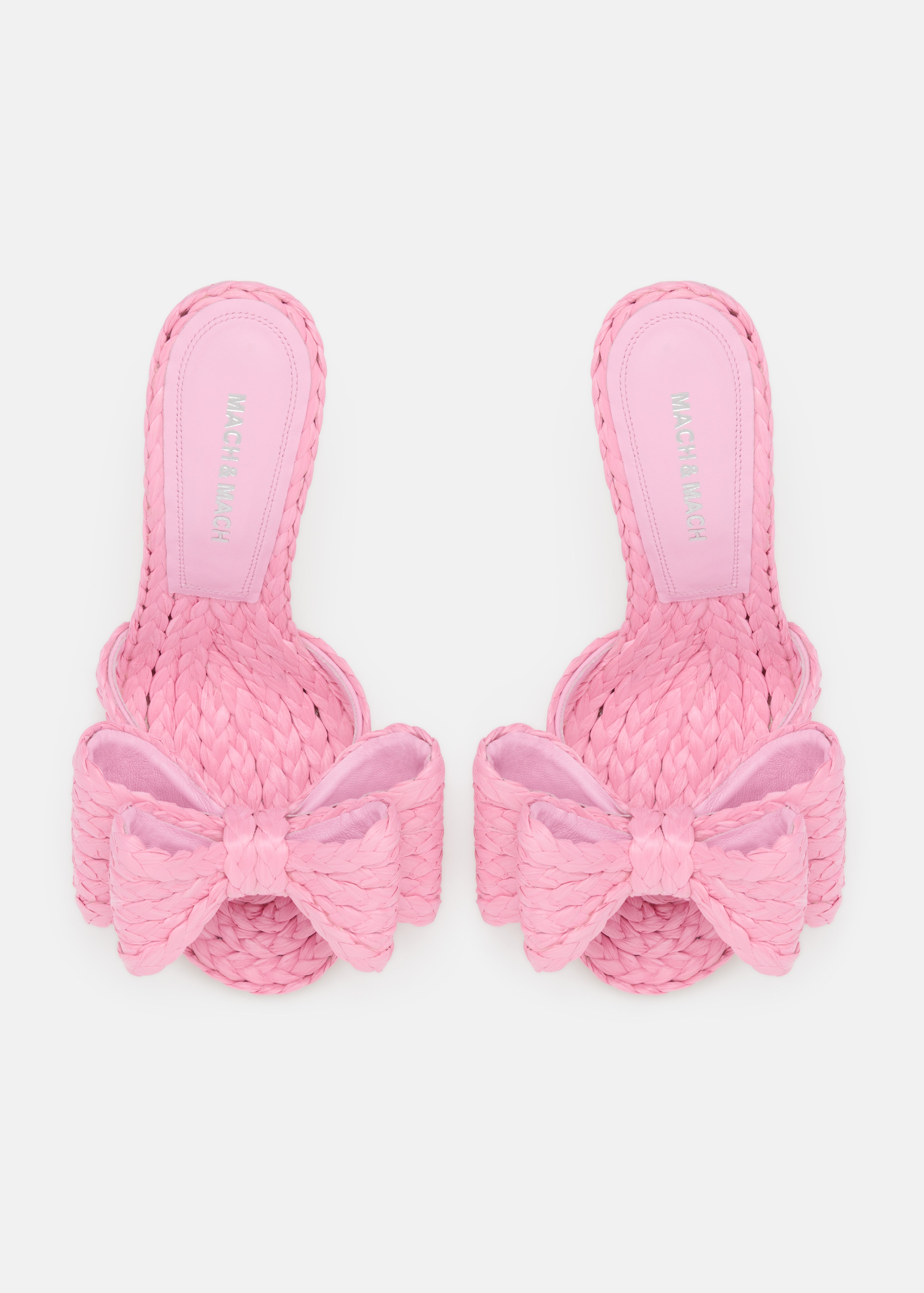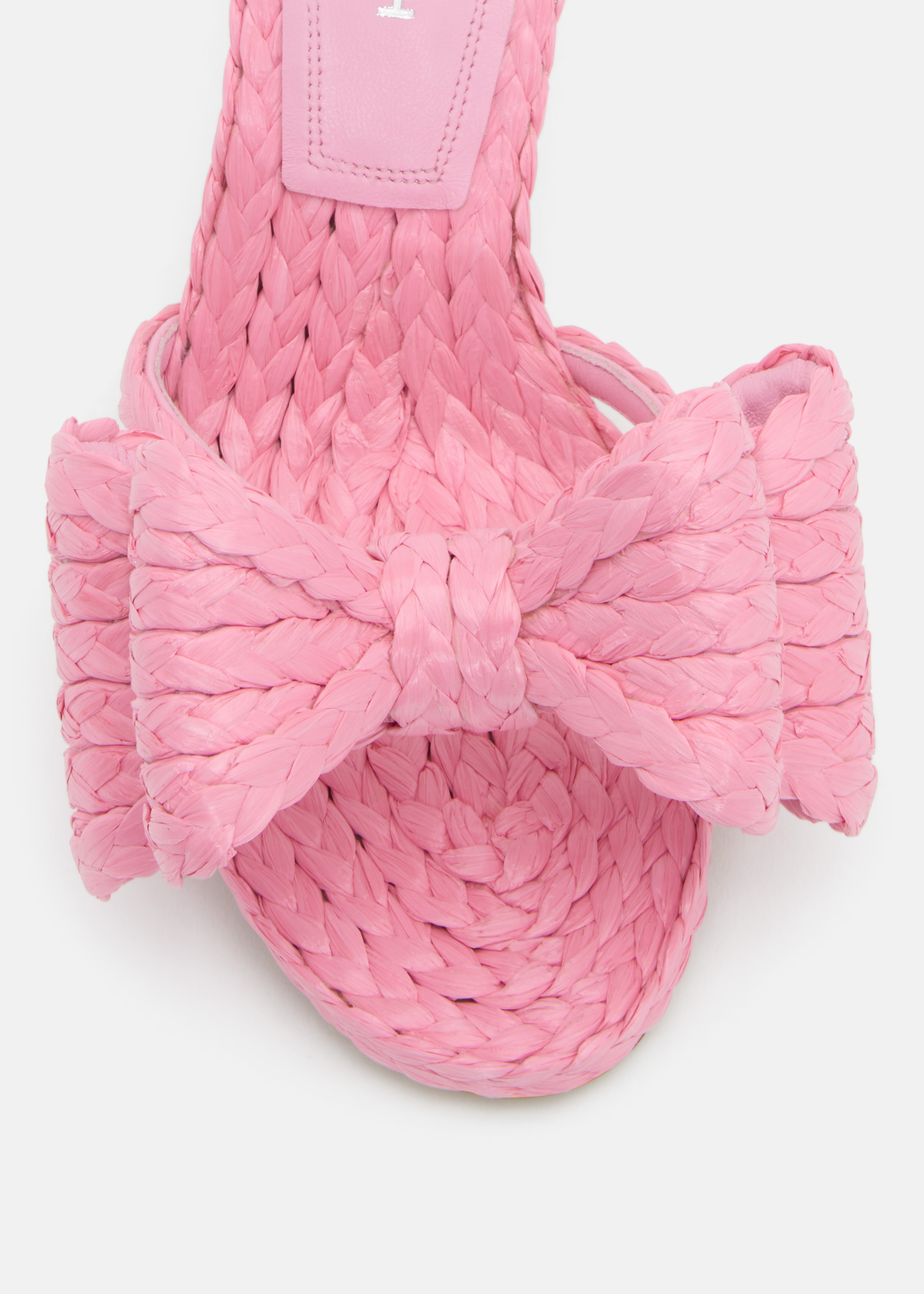 Le Cadeau Braided Pink Raffia Mules feature a playful braided raffia upper in a soft pink tone set on a round-toe silhouette. Set on an 85mm heel, they bring effortless lift and texture, crafted in Italy with kid leather lining and a calf leather sole. Pair them with a Double Bow Samantha Handbag for a polished look that moves easily from daytime celebrations to evening plans.