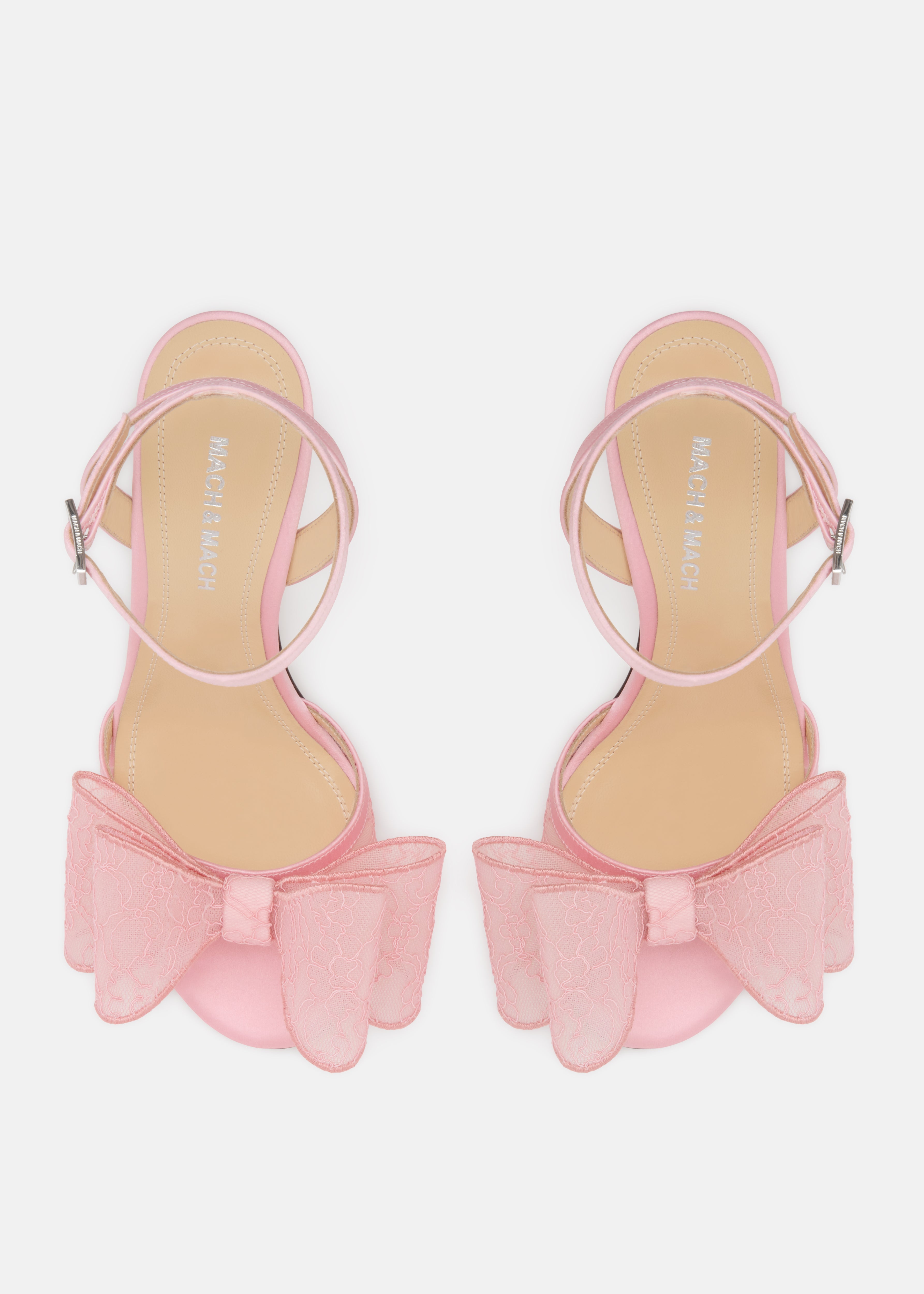 The Le Cadeau Pink Lace Sandals feature a fine lace upper designed to bring softness to a refined silhouette. Set on an 85mm heel, they balance romantic detail with a clean, modern shape, crafted in Italy with a lace upper, kid leather lining, and calf leather sole. Style them with a Double Bow clutch to complete the look.